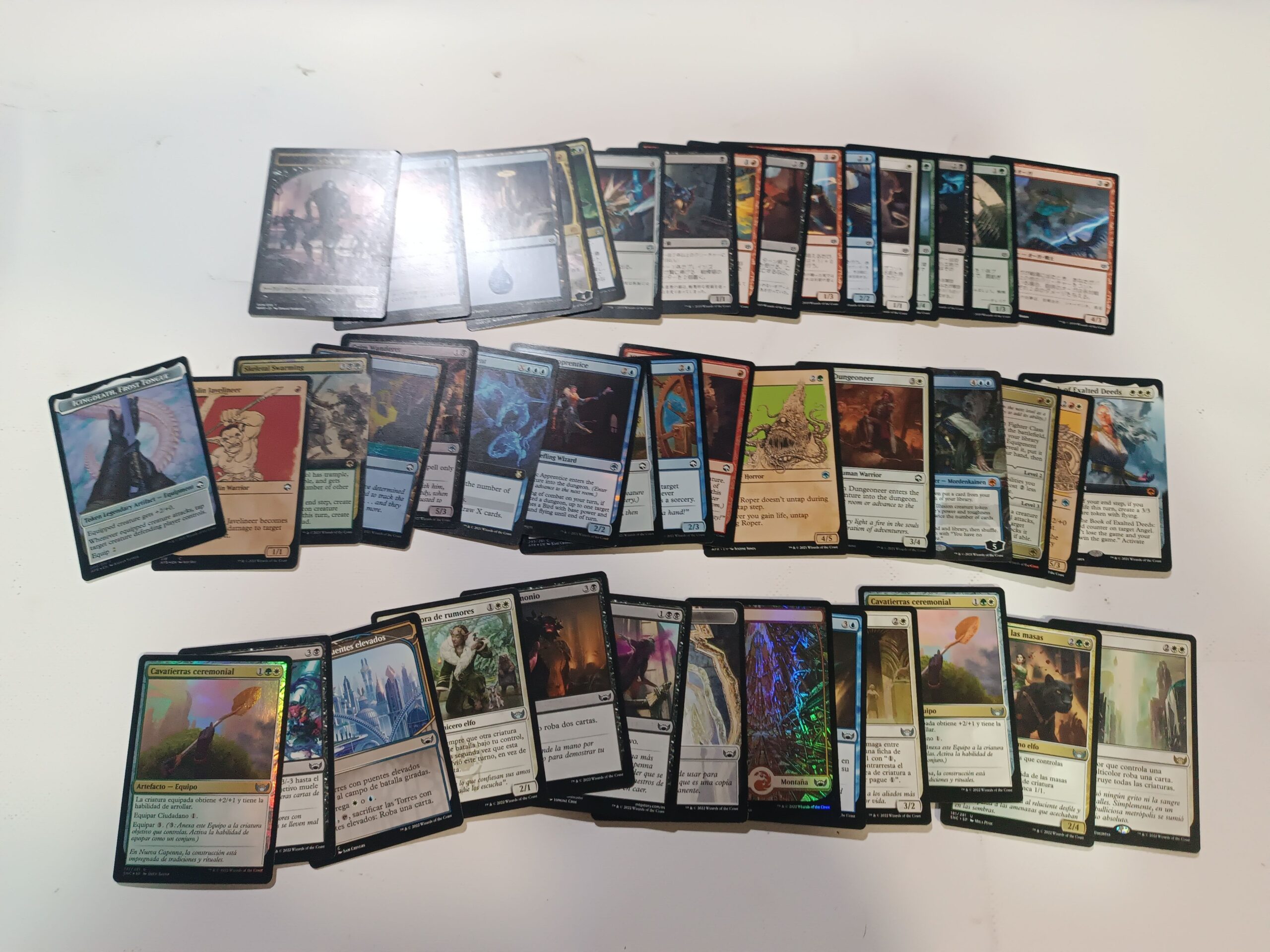 Lote cartas Magic sueltas. 45 cartas en total. 13 en español. 16 en inglés. 16 en japonés. En buen estado.